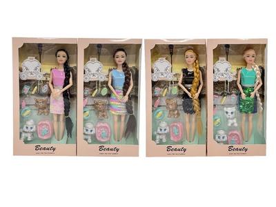 11.5寸实身9关节时装裙芭比带小狗吸塑4款混装【衣服变色】