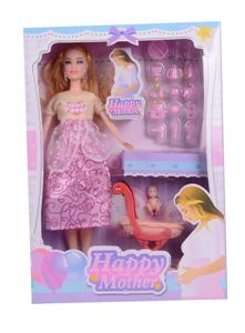 11寸孕妇大肚芭比娃娃带婴儿摇篮