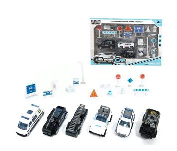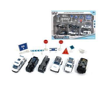6只装1:64合金特警滑行+路标(6款混装)