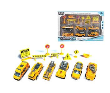 6只装1:64合金工程车滑行+路标 (6款混装)