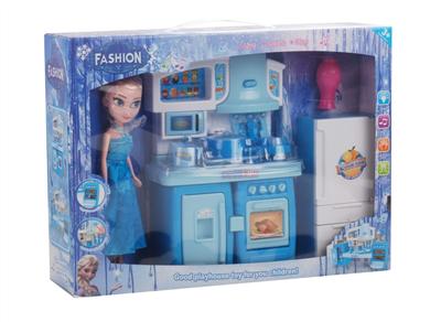 可分体橱柜+9寸芭比+配套 冰雪奇缘带灯光 音乐