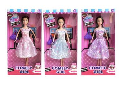 高档11.5寸实身活手时装短裙芭比 带手提包 3款混装