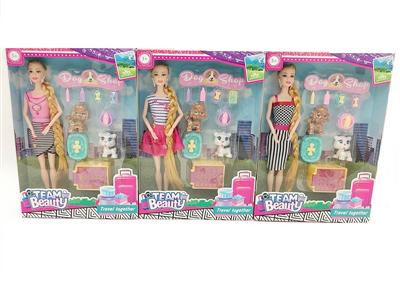 高档11.5寸实身9关节时装短裙芭比 带耳环 宠物狗吸塑套装 3款混装