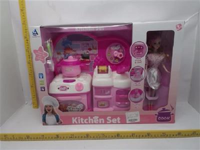 卡通粉红色益智2只组合厨房加芭比