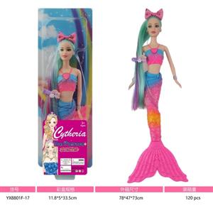 11寸实身七彩长发灯光彩虹美人鱼公主 加发夹加头饰仅带灯光功能 包电:3粒LR44纽扣电池