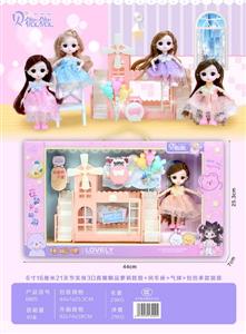 【中文贝微微】6寸16厘米21关节3D真眼精品萝莉娃娃+风车床+包包+气球多款混装