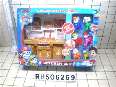 汪汪队灯光音乐咖啡色厨房家具餐具配汪汪队6PCS