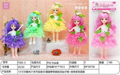 12寸30厘米21关节实身3D真眼萝莉娃娃花仙子裙+发饰多款混装