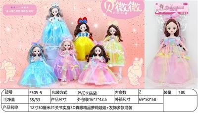 12寸30厘米21关节实身3D真眼萝莉娃娃+发饰多款混装
