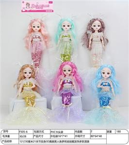 12寸30厘米21关节实身3D真眼美人鱼萝莉娃娃戴发饰多款混装