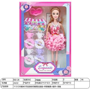 11.5寸30厘米5节实身彩印眼芭比娃娃+杯具餐具+配件+项链