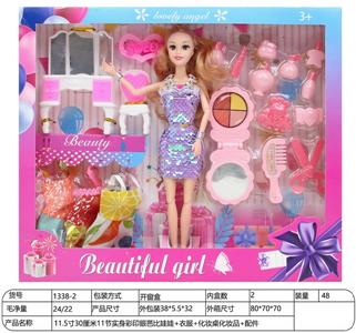 11.5寸30厘米11节实身彩印眼芭比娃娃+衣服+化妆桌化妆品+配件