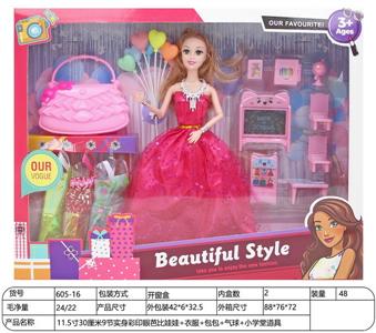 11.5寸30厘米9节实身彩印眼芭比娃娃+衣服+包包+气球+小学堂道具