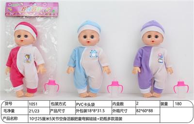10寸25厘米5关节空身活眼肥童弯脚娃娃+奶瓶多款混装
