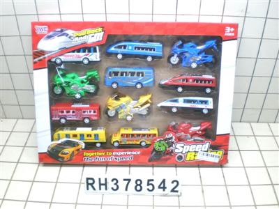 实色回力动车+巴士车+摩托车12PCS