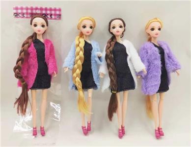 11寸11关节实身3D长辫子时尚皮草芭比娃娃多款混装