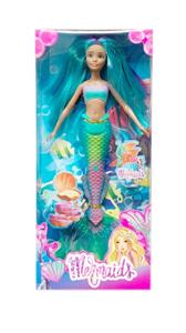 11寸实身活动手蓝色美人鱼娃娃带手提包头发加长加厚