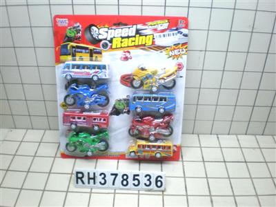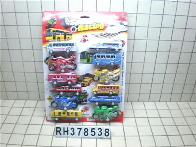实色回力动车+巴士车+摩托车12PCS
