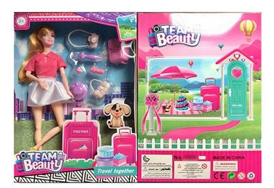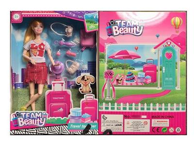 11.5寸实身晚装芭比带短裙行李箱靴子小芭比推车