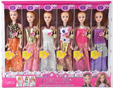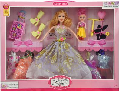 11.5寸实身晚装芭比带短裙靴子发夹项链