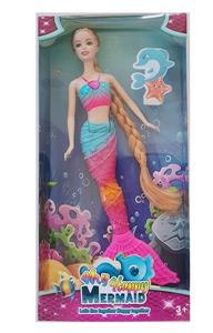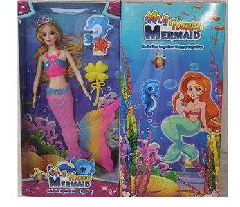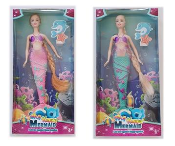 11.5寸实身长辫子美人鱼芭芘带灯光音乐 包电 2款混装