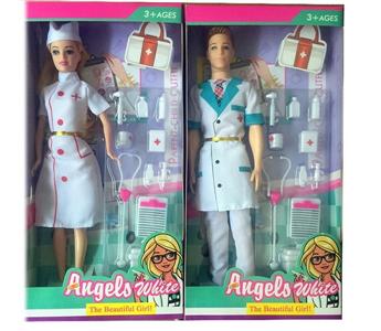 11.5寸实身活手男医生+女护士芭比 带医具套装吸塑