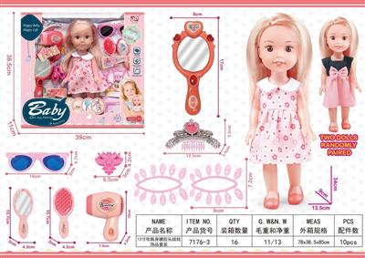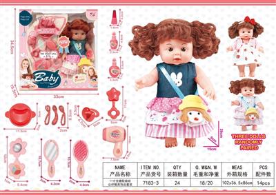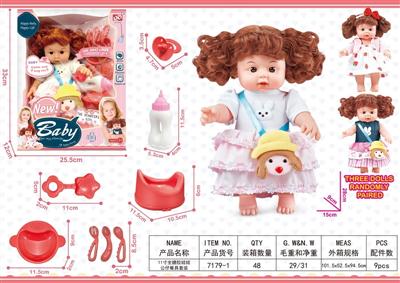 13寸吹瓶身搪胶头娃娃饰品套装