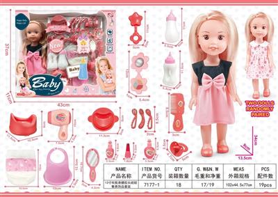 13寸吹瓶身搪胶头娃娃餐具饰品套装