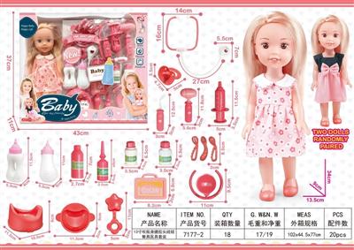 13寸吹瓶身搪胶头娃娃餐具医具套装