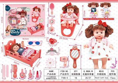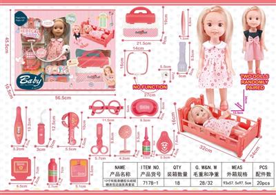 13寸吹瓶身搪胶头娃娃睡床花边盒医具套装