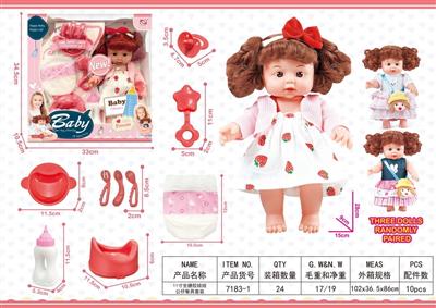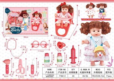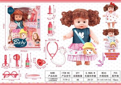 13寸吹瓶身搪胶头娃娃医具套装
