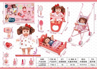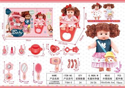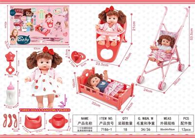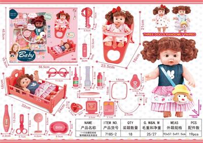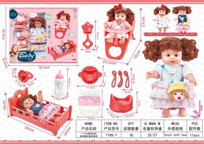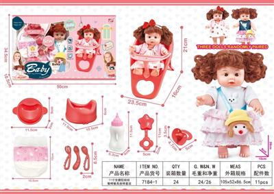 11寸全搪胶娃娃餐椅睡床餐具套装