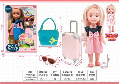 13寸吹瓶身搪胶头娃娃公仔旅行版套装