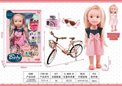 13寸吹瓶身搪胶头娃娃相机单车套装