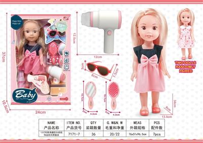13寸吹瓶身搪胶头娃娃饰品吹风筒套装