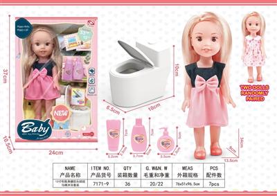 13寸吹瓶身搪胶头娃娃马桶沐浴套装
