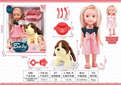 13寸吹瓶身搪胶头娃娃公仔遛狗套装