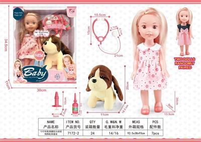 13寸吹瓶身搪胶头娃娃狗狗医具套装