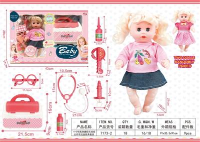11寸吹瓶身搪胶头娃娃公仔花边盒医具套装