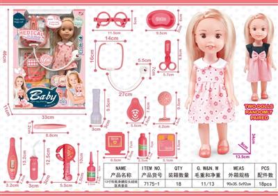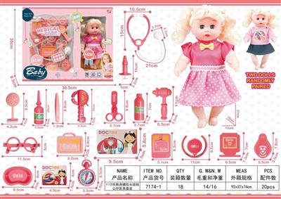 11寸吹瓶身搪胶头娃娃公仔医具套装