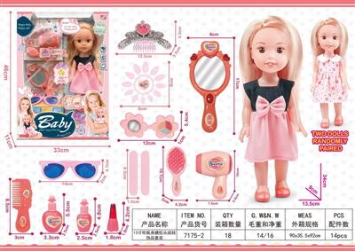 13寸吹瓶身搪胶头娃娃饰品套装