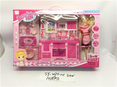厨房系列+红围裙芭比 +配套 芭比色 带电 灯光音乐(三灯)