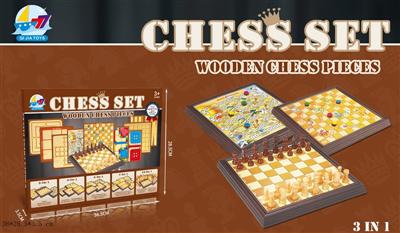 木制国际象棋3合1