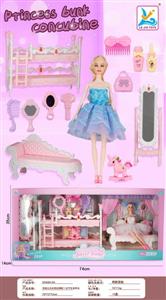 双层床家居亲子套装配11关节娃娃+6寸娃娃)