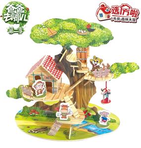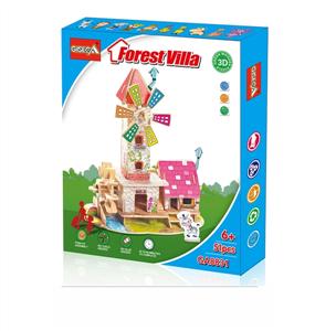 3D木质立体拼图DIY森林别墅模型积木(51片)