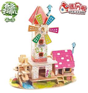 《爸爸去哪儿》3D木质立体拼图DIY拼装积木模型—2号房【风车别墅】(51片)