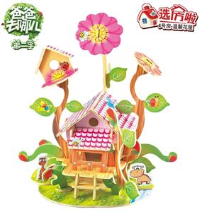 《爸爸去哪儿》3D木质立体拼图DIY拼装积木模型—4号房【温馨花屋】(42片)