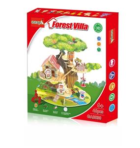 3D木质立体拼图DIY森林别墅模型积木(46片)