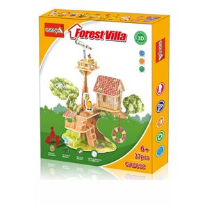 3D木质立体拼图DIY森林别墅模型积木(37片)