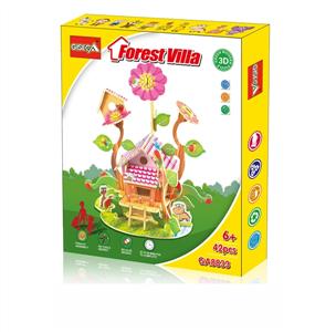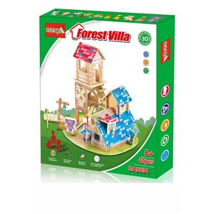3D木质立体拼图DIY森林别墅模型积木(42片)